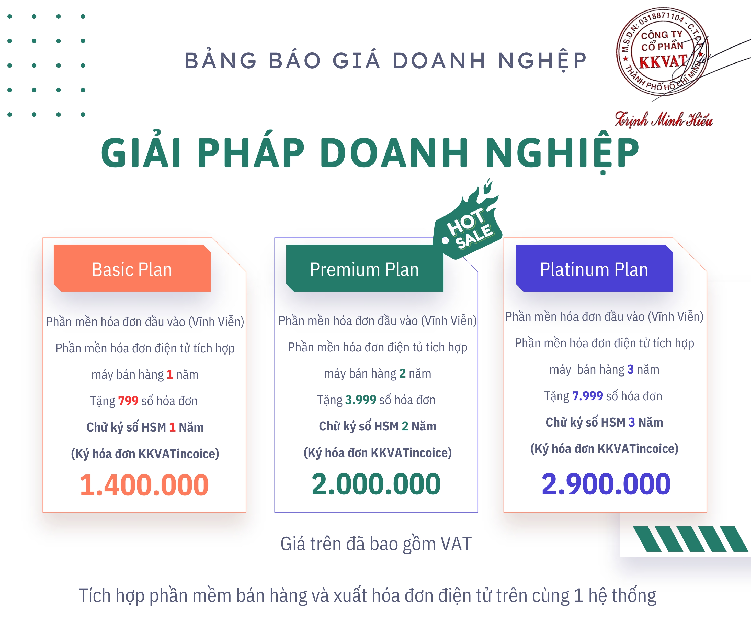 Bảng giá Hóa Đơn Điện Tử – Dành Cho Hộ Kinh Doanh