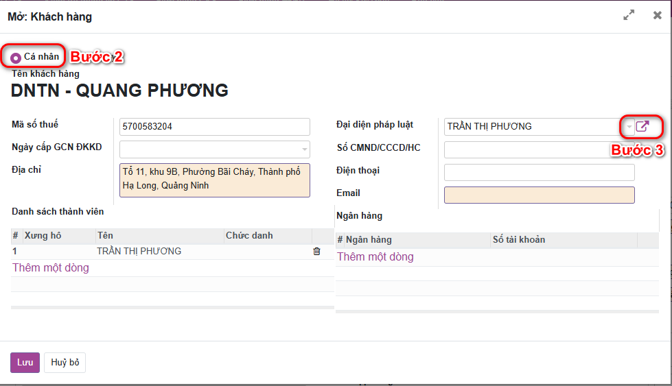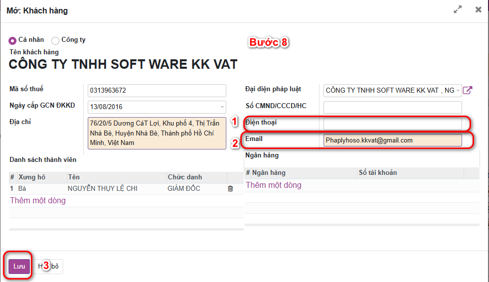 - B3: Bấm tiếp nút màu tím kế tên người đại diện.