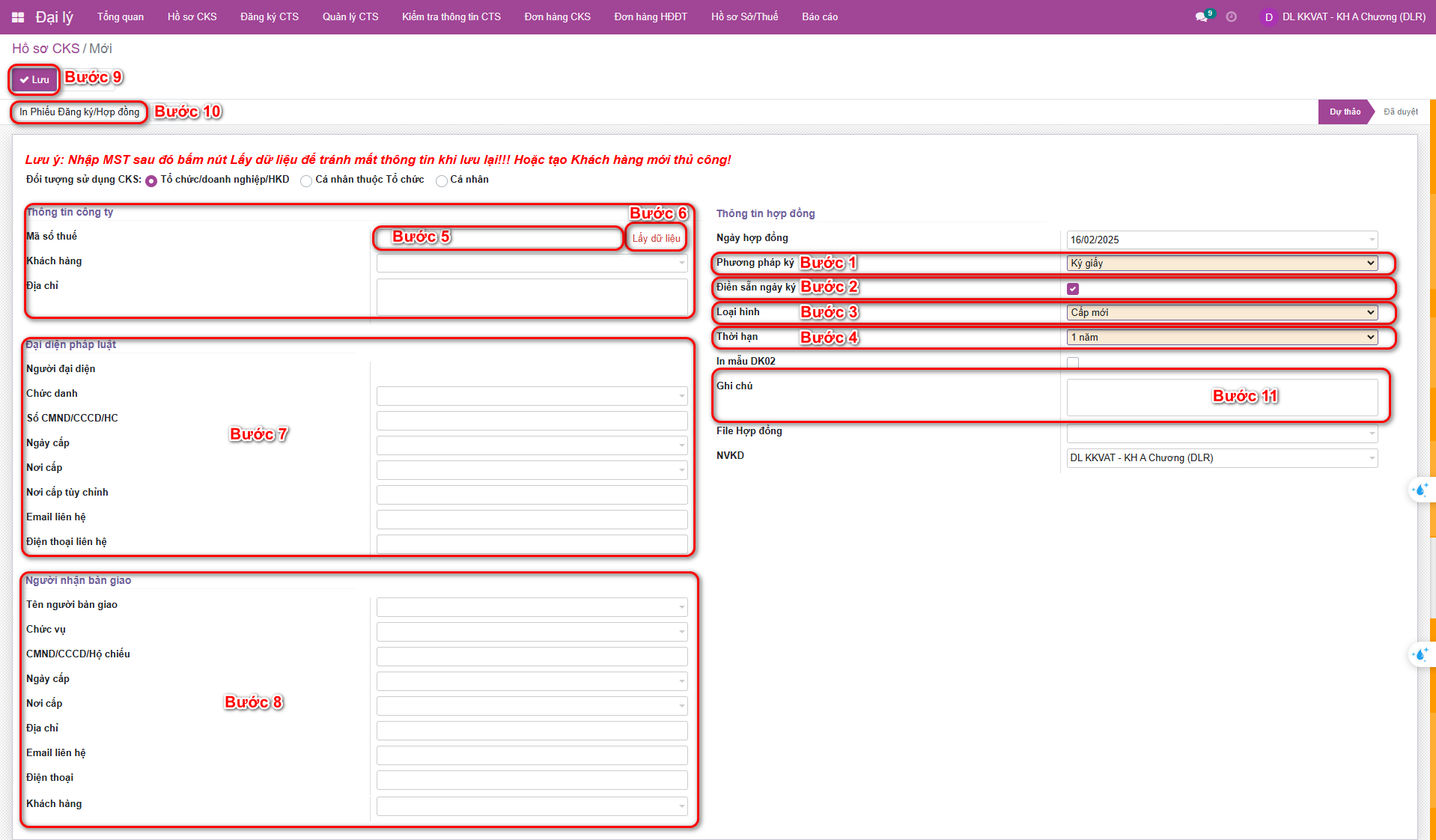 * Lưu ý: Chọn đúng thông tin cần Thời hạn cho khách hàng.