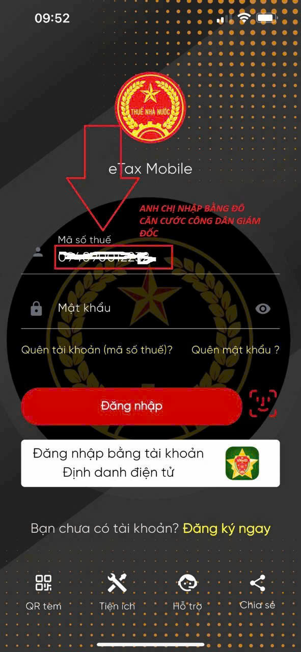 BƯỚC 2: ĐĂNG NHẬP ỨNG DỤNG eTAX MOBILE