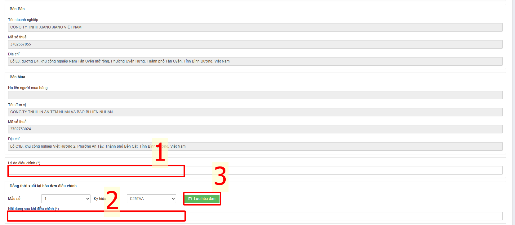 - Bước 5: Tại giao diện xuất hóa đơn điều chỉnh