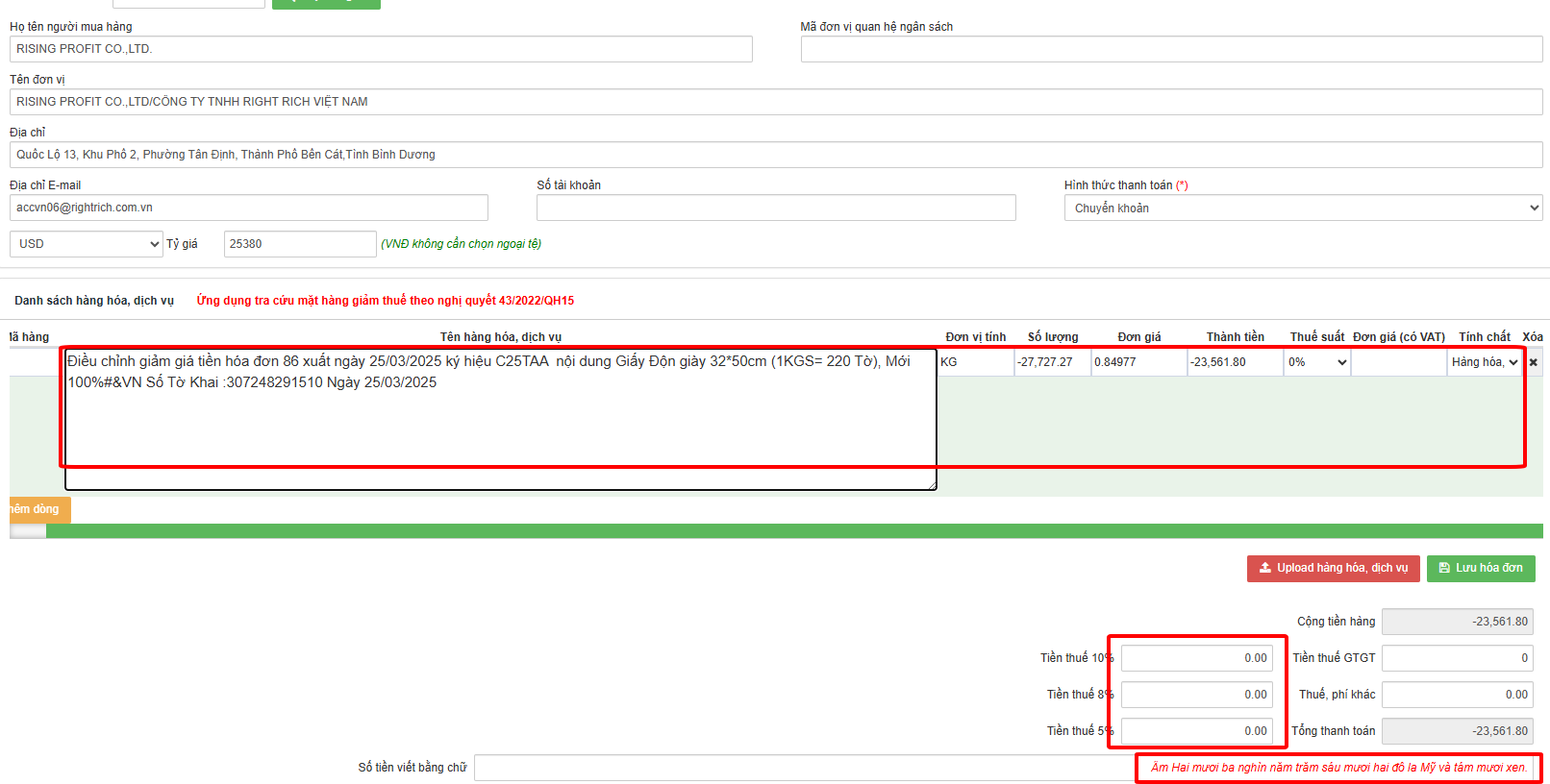 chọn đúng thuế suất mới và số tiền chênh lệch thuế)