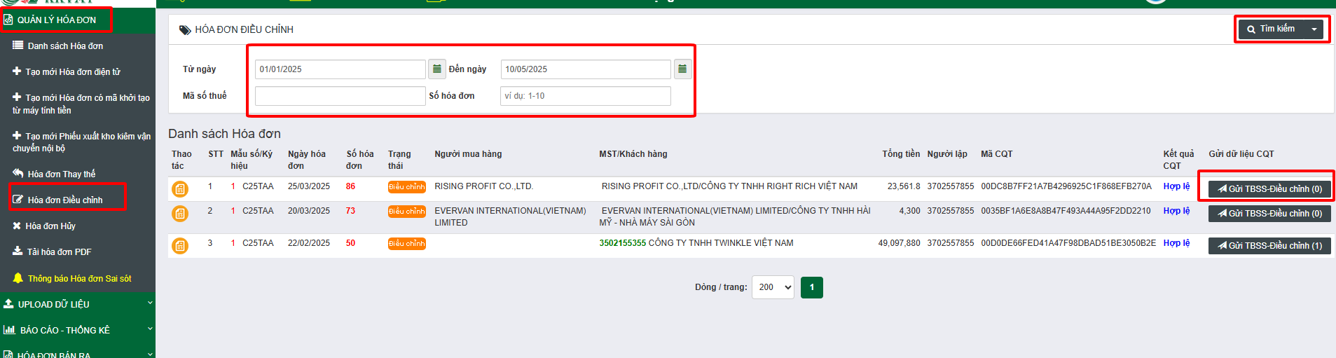 • B3: Trong danh sách hóa đơn tìm tới hóa đơn nháp có ghi chú Điều chỉnh