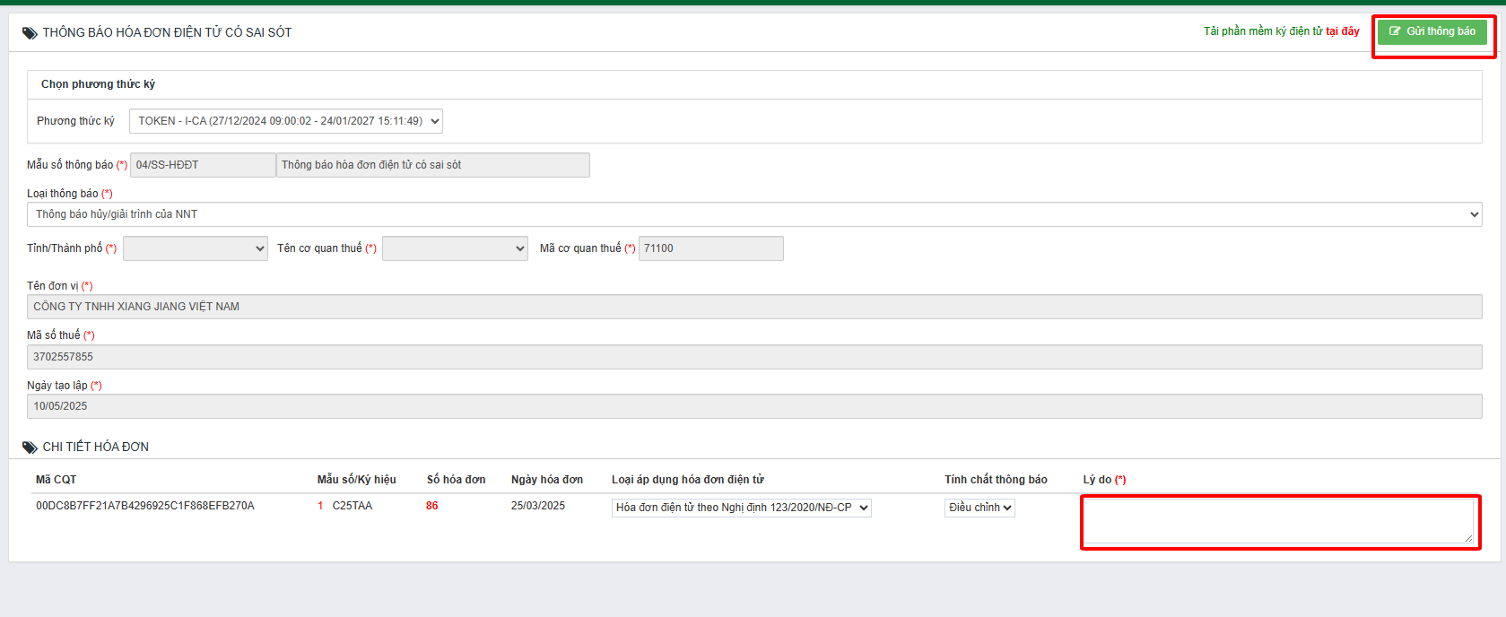 • B4: Nhập lý do sau đó ấn vào gửi thông báo