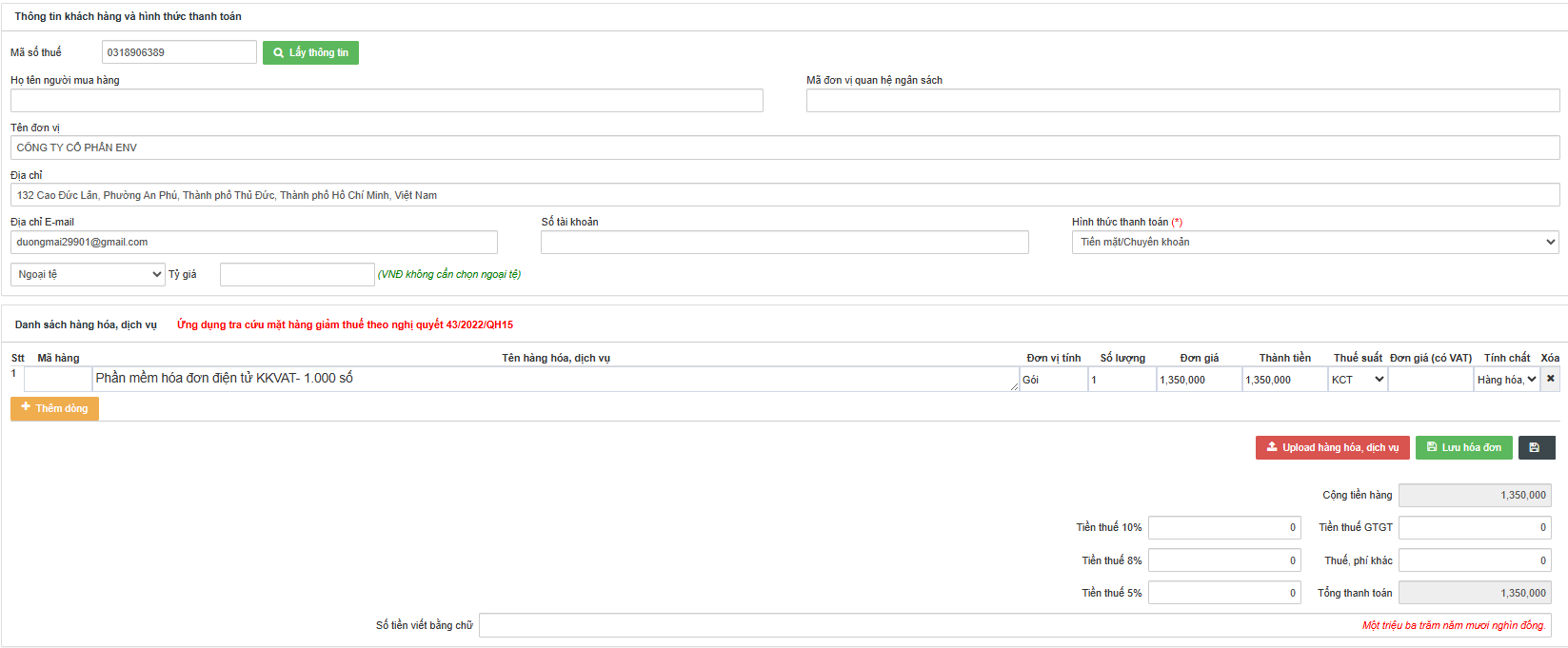 • B3: Sau khi hoàn thành ấn vào lưu hóa đơn